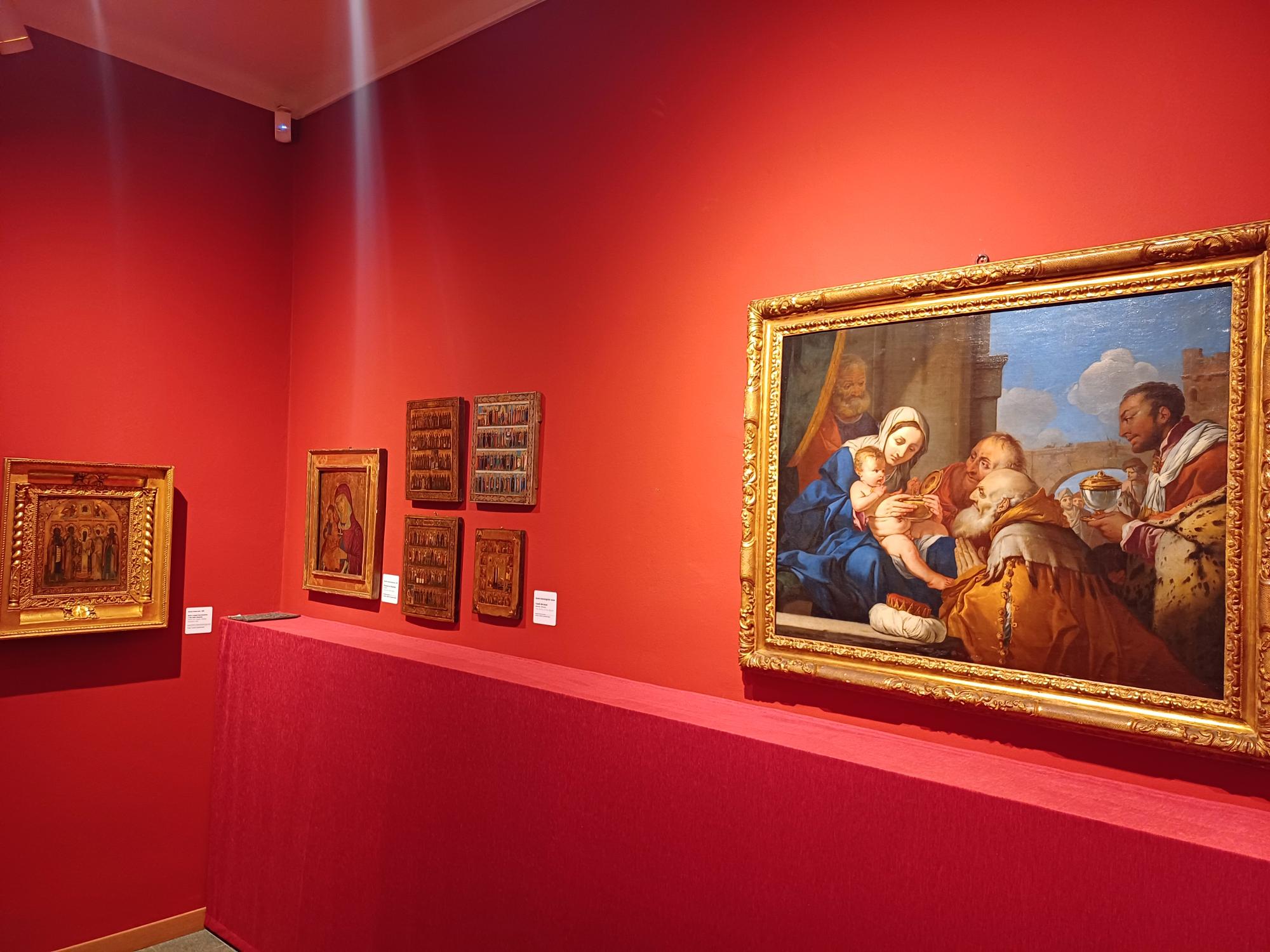C’è anche una sezione dedicata alla pittura sacra, con il dipinto “Adorazione dei Magi” di Giulio Carpioni e un San Sebastiano attribuito alla scuola di Camerino.